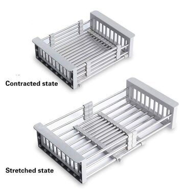 Materijal za hranu — Napravljen od metalnih čeličnih šipki umotanih u silikonom za hranu, bez BPA, lako se čisti i može se prati u mašini za sudove. Možete brzo da namotate stalak za sudoper i odete u fioku ili ormarić kada se ne koristi.
