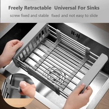 Višenamenski sklopivi stalak za sušenje sudova — Stalak za posuđe na rolo se može koristiti za sušenje opranih činija, lonaca, tiganja, posuđa, posuđa, pribora za jelo, itd. Takođe se može koristiti kao cedilo za povrće i platforma za pripremne radove preko lavabo.