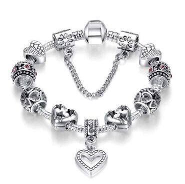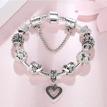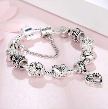 Elegantna narukvica zmijskog pletiva (snake chain) za privjeske, izrađena od Sterling Srebra (žig S925 iznutra). Kopča je u obliku srca s blistavim cirkonima. Veličina: 18 cm. Uključeno: Uz naru...