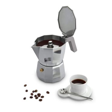 Moka aparat za kafu od aluminijuma sa ručkom i dugmetom od PA, 3 šoljice. Idealan za one koji ne žele da odustanu od ukusa prave italijanske kafe, Moka aparat za kafu ima poseban dizajn, bogat detaljima. Moka je omaž za Alfonso Bilaetti aparat za kafu, jedini koji daje ukus doma.