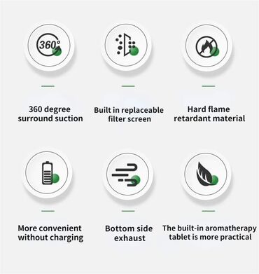 Integrisan zamenjivi filter negativnih jona od pamuka, koji adsorbuje katran i oslobađa negativne jone, i odvodi vazduh sa donjeg dela. Efikasno filtrira štetne materije i smanjuje pasivni dim.