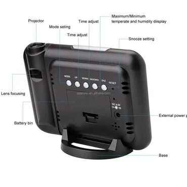 Zanimljiv, praktican i koristan sat budilnik koji ima mogucnost proektovanja tacnog vremena na plafonu zidu ili nekoj drugoj ravnoj povrsini.