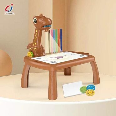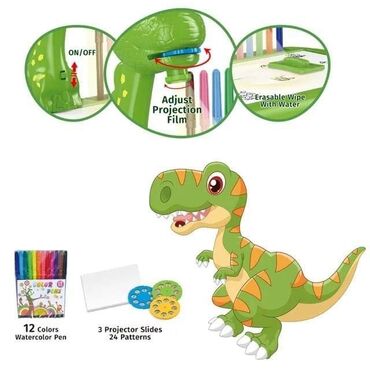 Sto sa projektorom za crtanje Dino SET 3u1 Edukativna igračka koja pomoću lampe i slajdova (krugova) projektuje crtež na hartiji i pomoću koje dete uči da crta i boji, razvija motoriku i koordinaciju pokreta.