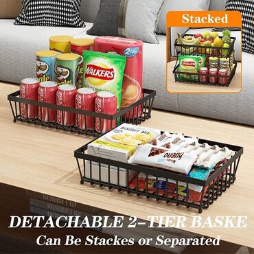 • JEDNOSTAVNO SASTAVLJANJE: Dizajn korpe za voće je bez šrafova, dve korpe moraju biti spojene kopčama, jednostavno sastavljanje, uštedite vreme sastavljanja. Između dva sloja ima dovoljno prostora, možete brzo i lako zgrabiti stvari koje su vam potrebne