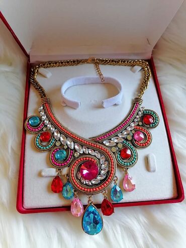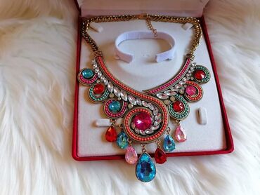 Lot Nakit-a (novi i polovni) ✨ Sadržaj lota: Dva para šljokičavih alki Dve coker ogrlice Dve pletene narukvice za leto (novi) Novi bizuterijski prsten Nova gumica za kosu P.S. fashion snala ...