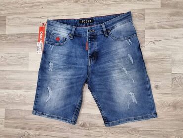 Muške teksas bermude – više modela i boja - Brend: Pull&Bear (etiketa prikazana) - Veličina: EU 38 / MEX 38 / USA 38 - Poreklо: Pakistan (navedeno na etiketi) - Materijal: klasični denim, više pra...