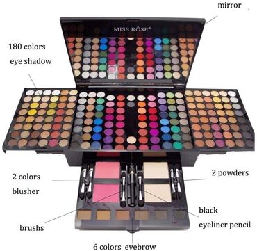 Miss Rose Blockbuster Makeup Palette – komplet za šminkanje sa velikim izborom boja i dodataka. Sadržaj: - Višeslojna paleta sa ogledalom - Stotine nijansi senki za oči: mat, saten i šimer, od neu...