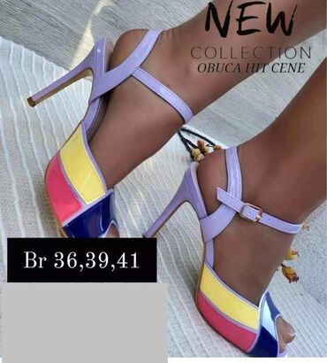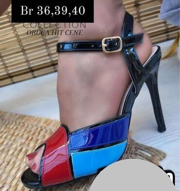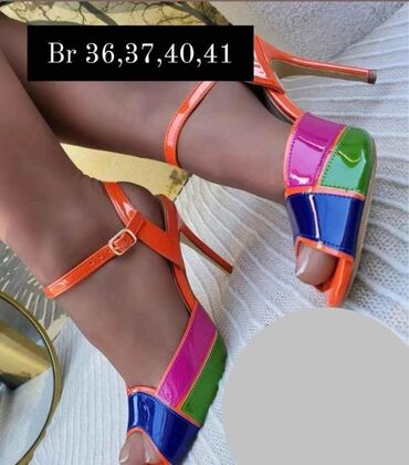 Ženske sandale na štiklu – brend Safran - Model: otvorene sandale sa tankom potpeticom i remenjem preko prstiju i oko risa - Materijal: gornjište od holografskog sintetičkog materijala sa utiskani...