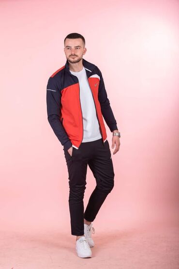 Muški trenerka komplet – FILA - Dvodelni set: dukserica dugih rukava + donji deo trenerke sa ranflama - Logotip FILA na grudima i na nogavici - Boje: tamnoplava, crna, crvena, bela (gornji deo), d...