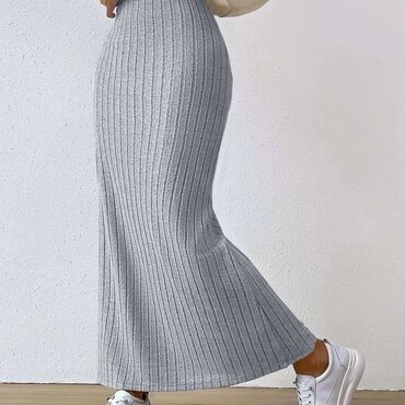 Ženska suknja olovka kroja u tamnosivoj boji, od tkanine sa finom teksturom. Gornji deo struka izrađen je od glatke crne eko-kože, što daje moderan kontrast i naglašava liniju struka. Zatvaranje je...