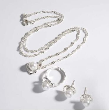 PRELEP KVALITETNI ELEGANTNI POSREBRENI SET OD DVA NAKITA.SA BISERIMA I CIRKONIMA.SA ŽIGOM S925.