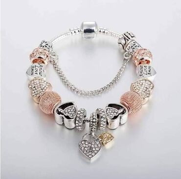 Elegantna narukvica od sterling srebra (925) sa zmijskim vezom. Glavna karakteristika je romantična kopča u obliku srca-katanca, ukrašena roze cirkonima i dodatnim malim priveskom-ključem. Veličina...