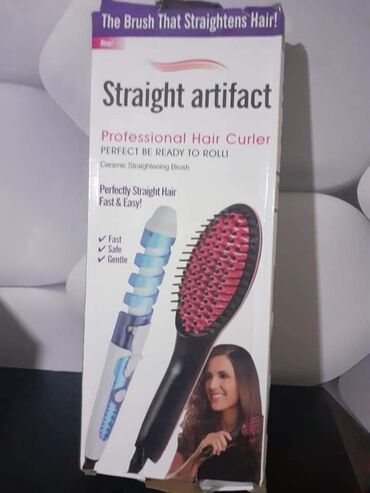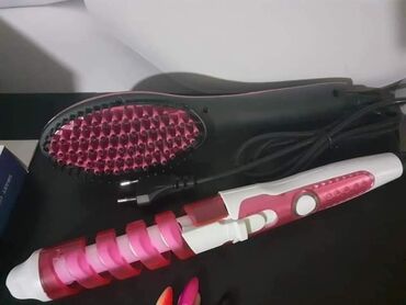Cetka za ispravljanje kose i uvijac za lokne zajedno u jednom pakovanju.