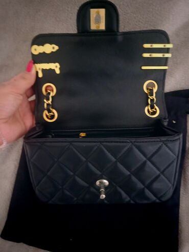 Mona crna ženska torbica preko ramena sa velikim zlatnim slovom „M“ na preklopu. - Materijal: glatka koža (look mat, čvrsta struktura) - Boja: crna sa zlatnim metalnim detaljima - Zatvaranje: pre...