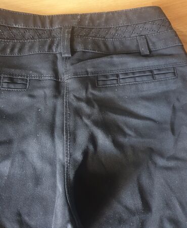 Cigaret model, crne klasicne pantalone ravne kraci model, broj 38 neka s-m velicina, struk 36 cm. Mestimicno buckice.