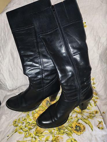Crne duboke cizme Nine West, prava koza. Broj 40, moze i 40,5. Veoma udobne. Spolja su odlicno ocuvane bez ostecenja, dok su se iznutra obe oljustile na nekim mestima (uslikano na poslednjoj slici,...