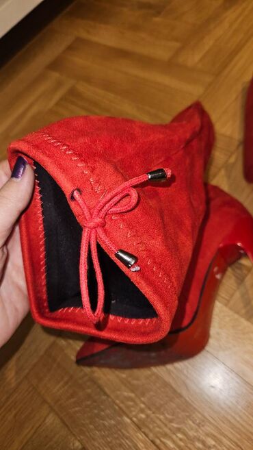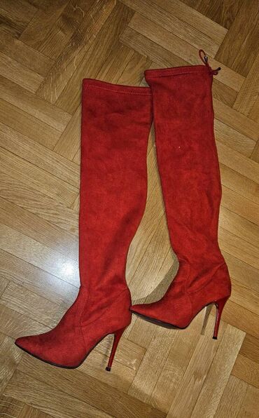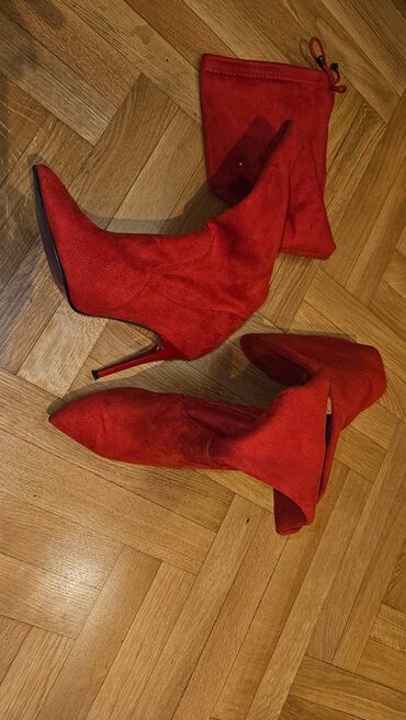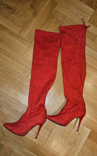 Čizme u karmin crvenoj boji, veličina 38. Gornji deo elastičan i prilagodljiv