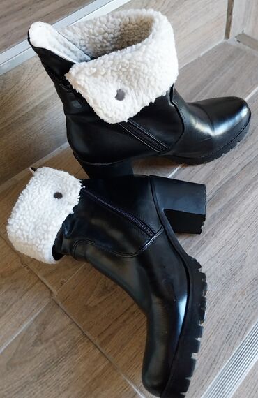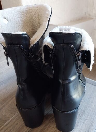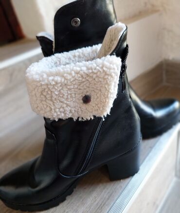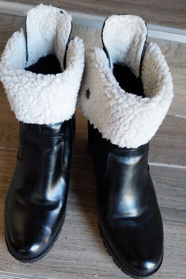 Crne kozne ženske čizme do polovine lista, klasičnog dizajna. - Materijal: glatka crna koža prirodna spolja, mekana postava od filca/velura iznutra za dodatnu toplinu. - Zakopčavanje: bočni rajsfe...Dogovor