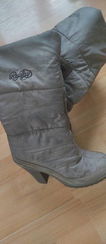 Izuzetno tople sive REPLAY ČIZME. Imaju rajfešlus sa strane, punu štiklu visine 11 cm. Dužina čizama 37 cm. Unutrašnje gazište oko 25.5 cm