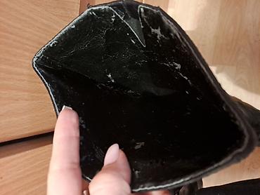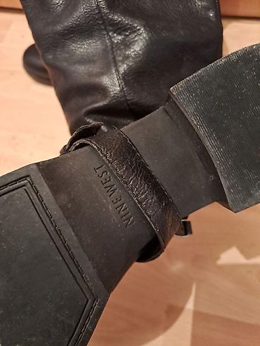 Crne duboke cizme Nine West, prava koza. Broj 40, moze i 40,5. Veoma udobne. Spolja su odlicno ocuvane bez ostecenja, dok su se iznutra obe oljustile na nekim mestima (uslikano na poslednjoj slici, zato ova cena). Peta 5cm.