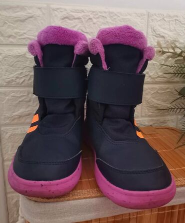 Dečije zimske čizme Adidas – model D5382 (brojevi 25–30) - Dizajn: planinarski/treking stil do članka, sa Adidas logotipom sa strane i na čičak traci. - Kopčanje: kombinacija elastičnih pertli kro...
