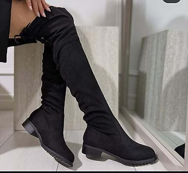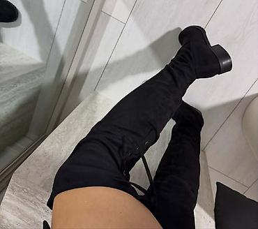 Ženske visoke čizme do kolena, crne. U savršenom stanju, nošene samo po sobi, prodajem zato što su mi male. - Materijal: gornji deo kombinacija glatke eko-kože i elastične tekstilne strane koja ...