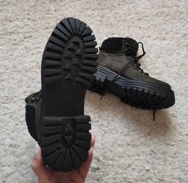 Ženska obuća – više modela: 1) Čizme do polovine listova, bež/šampanj nijansa. Mekani gornjište sa blago nabranim delom oko zgloba. Ravni đon sa izraženim šarama za dobro prianjanje. Bez rajsferšl...