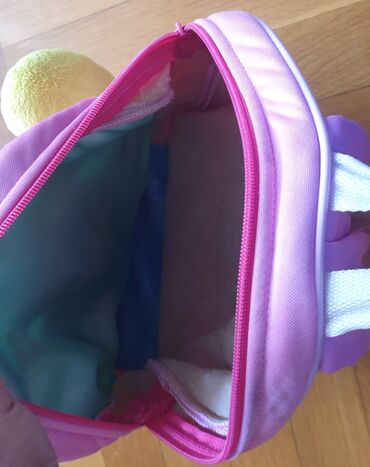 Torba preko ramena za decu – pink - Dimenzije: 26 x 19 cm - Cena: 250 RSD - Materijal: glatka, lako se briše - Dizajn: motiv jagodice i voćnih ilustracija, sjajna završnica - Glavni odeljak sa raj...