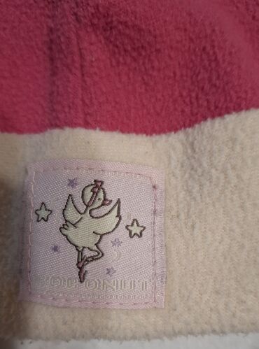 Zimski pleteni komplet: kapa sa pufnom + dugačak šal - Boje: krem-bela baza sa bordo/crvenim dezenom - Motiv: nordijski/božićni uzorak – pahulje snega, jelke i geometrijske šare raspoređene po cel...