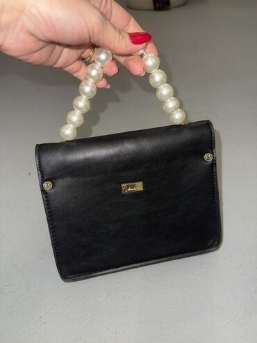 Elegantna torbicaPS Crna elegantna torbica sa ručkom od bisernih perli