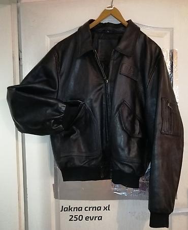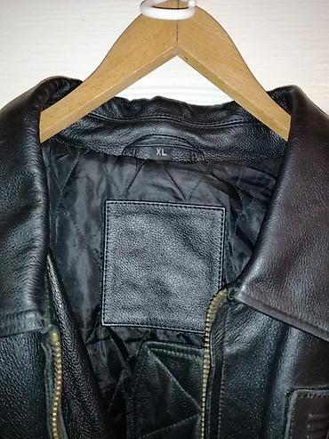 Crna kožna jakna – veličina XL - Klasičan kroj sa kragnom i punjenom