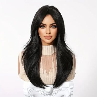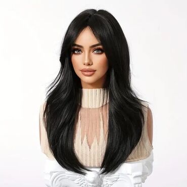 Kovrdžava perika sa šiškama – crna, srednje dužine - Stil: bogate, definisane kovrdže sa laganim volumenom; ravne šiške koje prirodno padaju preko čela - Dužina: do ramena - Boja: prirodna crna - ...