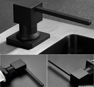 Ugradni dozator za sudoperu za tečni sapun i deterdžent, kvadratni, crni.