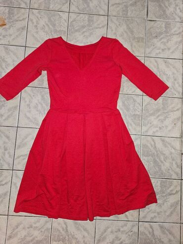 Crvena haljina midi dužine. Rastegljiva, veličina s-m