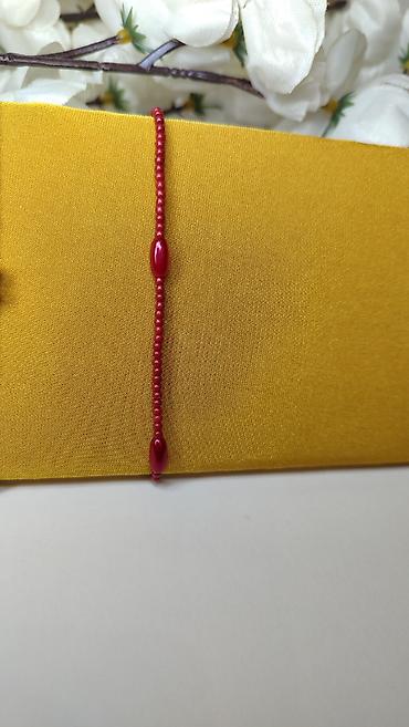 - Ručno nizane staklene perlice u intenzivno crvenoj boji