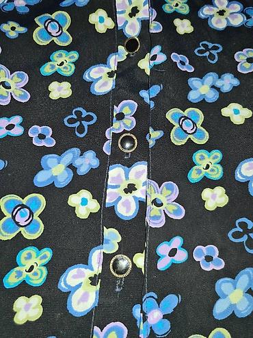 Ženska košulja-haljina sa cvetnim printom - Kroj: mini dužina, struk naglašen integrisanim pojasom sa šnalom; kratki rukavi sa blagim naduvavanjem na ramenima; klasična košulja-kragna. - Kopčanje:...