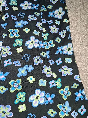 Maksu haljina sa cvetnim printom, idealna za udobno i opušteno nošenje. Haljina je pretežno crvene boje sa raznovrsnim cvetnim motivima u plavoj, zelenoj i beloj boji. Karakteriše je elastični izre...