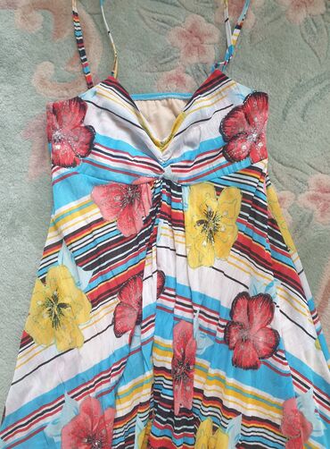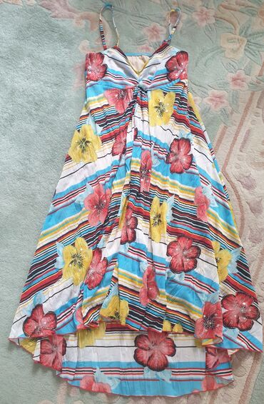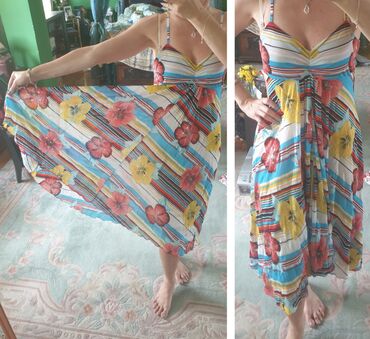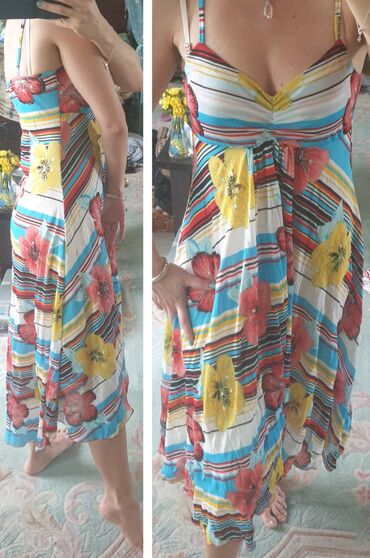 Potpuno nova letnja haljina, sa etiketom, divna, prelepa viskoza, kombinovana sa cipkom. Pozadi na pojasu jaca guma, te je moguce podesavati struk. Vel M. Haljina je na slici sa cenom koliko je kos...