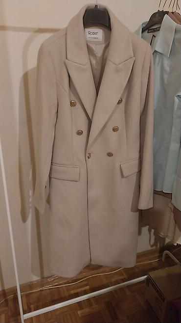 Damski kaput Robin 38 – bež/ - Model: duži, dvoredno kopčanje -