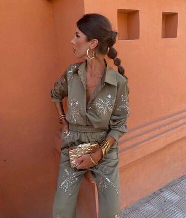 - Stil: elegantno–ležeran set za večernje izlaske, proslave ili chic dnevne kombinacije; može se nositi zajedno ili odvojeno.