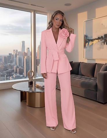 Kompleti sa strukiranim sakoom i upečatljivim cvetnim detaljem idealni su za svečane prilike, proslave, ali i kada želiš da izgledaš posebno.