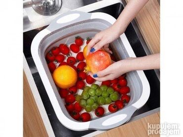Ovaj predmet savršeno se koristi u seckanju / rezanju povrća, voća i mesa, pranju posuđa ili hrane kao sklopiva posuda za posuđe, može biti i korpa za odlaganje hrane i pica, u ormar ili hladnjak.