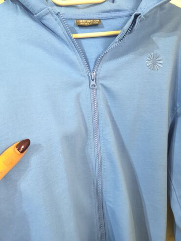 - Detalji: kapuljača bez učkura, elastične manžetne na rukavima i na donjem rubu, diskretan vezani cvetni/logotip na levoj strani grudi