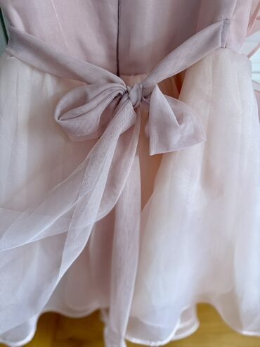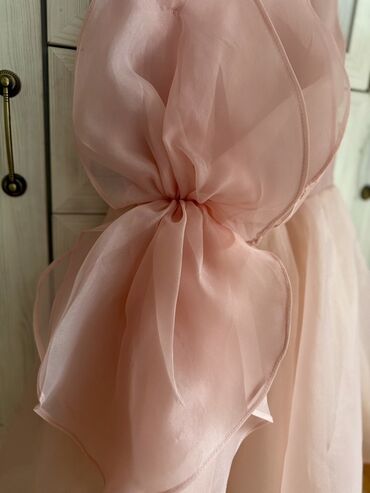 - Detalji: veliki dekorativni cvet/mašna od organze sa strane napred; u struku pozadi satenska traka koja se veže u mašnu