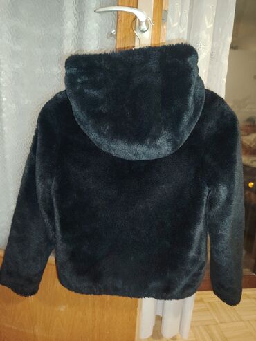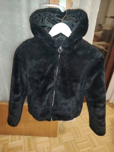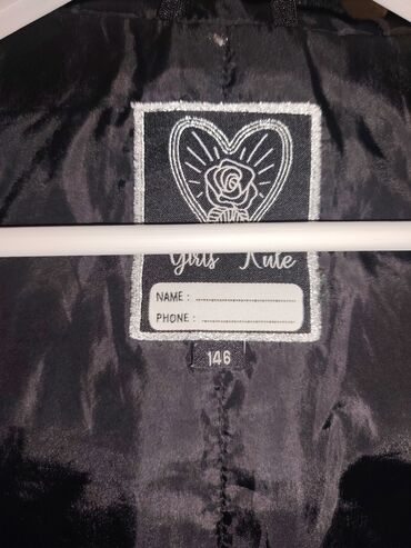 Crna dečija jakna/kaputić od veštačkog pliša (teddy/faux fur), sa kapuljačom. Zatvaranje na rajsferšlus sa metalnim prstenom za lakše povlačenje. Unutrašnjost glatka postava u crnoj boji. Na unutrašnjem delu nalepnica/etiketa sa motivom „Girls Rule“ i poljima za upisivanje imena i telefona. Veličina: 146 (približno za uzrast oko 10–11 godina, zavisno od deteta). Kroj je ravan, dužina do kukova, rukavi dugi. Topao i mekan materijal, prijatan na dodir, pogodan za hladnije dane. Elegantan, jednostavan dizajn u jednobojnoj crnoj boji – lako se kombinuje uz različite stilove.