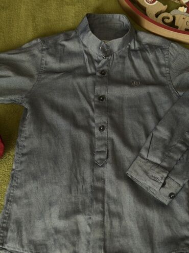 Komplet dečijih košulja – različiti modeli i veličine - Veličina 128: svetlozelena košulja na dugmad, klasičan kroj. - Veličina 122: oker/braon košulja, dug rukav, džep na grudima. - Veličina 116:...
