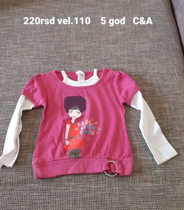 Dečija majica dugih rukava, ljubičaste boje, brenda W&L. Na prednjoj strani je šareni print sa natpisima “Divison”, “Luck”, “Ice” i ilustracijom simpatične patkice sa mašnama. Okrugli izrez, meki p...