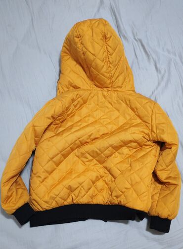 128-134Dečija jakna sa kapuljačom, prošivena, u žutoj boji.