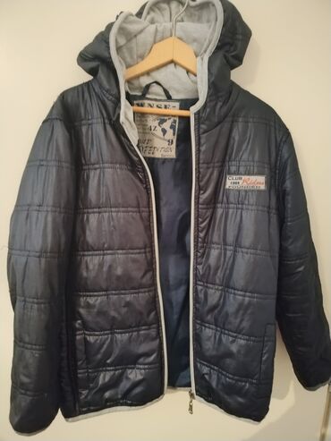 - Dizajn: prošivena (štikana) konstrukcija sa horizontalnim panelima; kontrastni sivi obrubi oko kapuljače i duž ivica