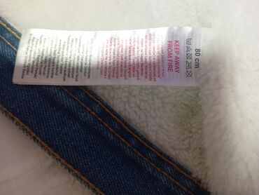 - Materijal: klasičan plavi denim spolja, unutra i kragna obloženi mekanim veštačkim krznom (šerpa) za dodatnu toplinu
